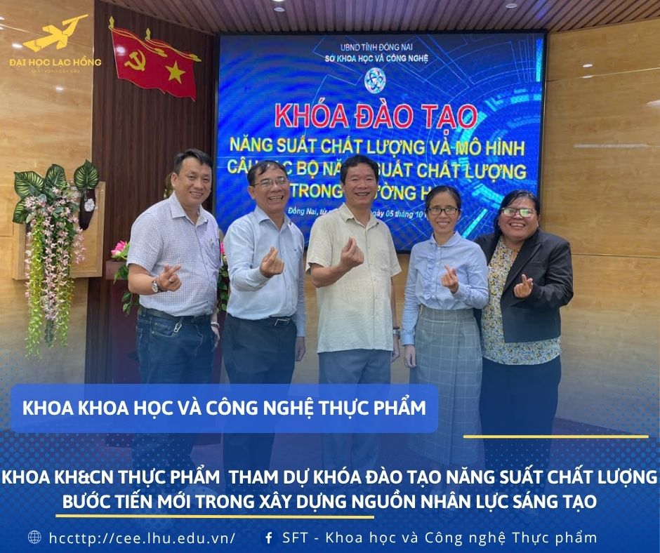 Đại diện Khoa Khoa học và Công nghệ Thực phẩm – Trường Đại học Lạc Hồng, tham dự khóa tập huấn có Cô ThS. Nguyễn Thái Thanh Trúc, Trưởng Bộ môn Công nghệ thực phẩm và Cô ThS. Phan Kim Anh. Sự hiện diện của các giảng viên không chỉ thể hiện tinh thần học hỏi mà còn là minh chứng cho nỗ lực của khoa trong việc tiếp cận, ứng dụng các phương pháp quản lý chất lượng hiện đại vào giảng dạy và nghiên cứu.
