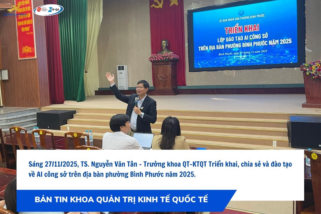 Trong phần nội dung chính, TS. Nguyễn Văn Tân – Trưởng khoa Quản trị – Kinh tế Quốc tế – đã mang đến cái nhìn toàn diện về năng lực số và ứng dụng AI trong công việc hành chính. Bài chia sẻ tập trung vào các chủ đề trọng tâm: