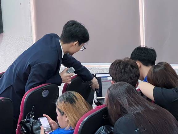 Sinh viên đã được hướng dẫn thực hành ngay tại chỗ: xây dựng website mẫu, thử nghiệm công cụ AI và thảo luận nhóm về chiến lược nội dung.