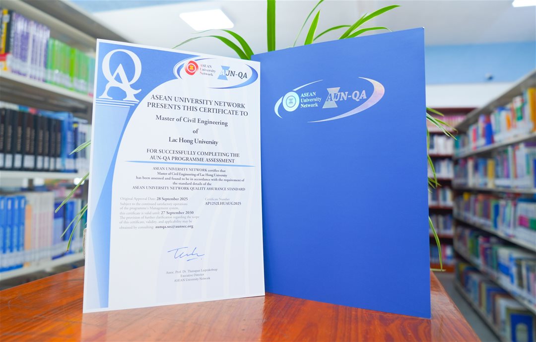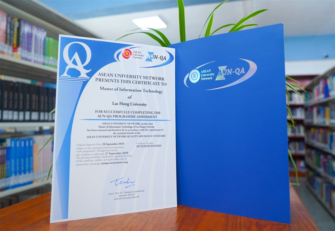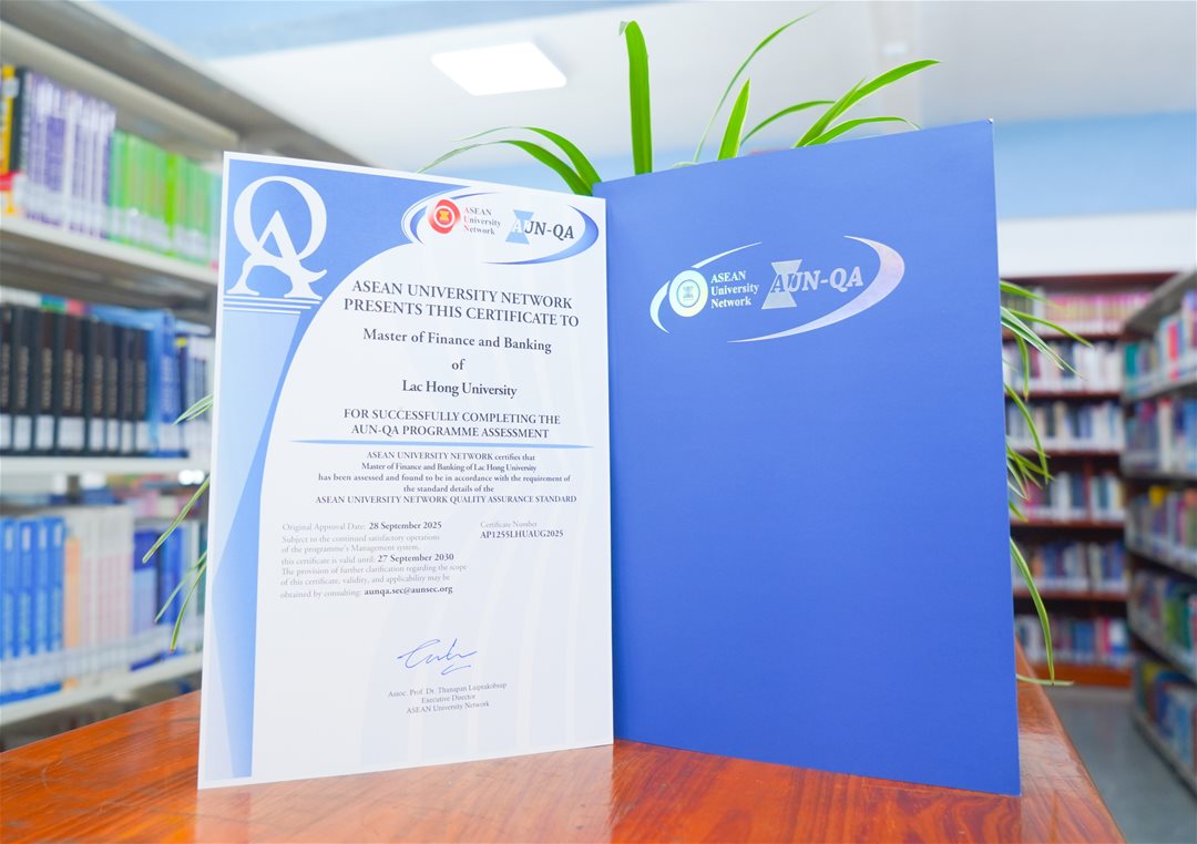 Khoa Sau đại học, trường Đại học Lạc Hồng (LHU) chính thức nhận được chứng nhận từ Mạng lưới các trường đại học Đông Nam Á (ASEAN University Network – AUN), đạt chuẩn AUN - QA cho 04 chương trình đào tạo thạc sĩ gồm: Tài chính - Ngân hàng, Quản trị kinh doanh, Công nghệ thông tin và Kỹ thuật công trình.