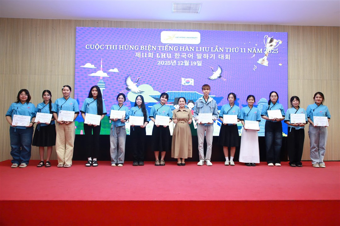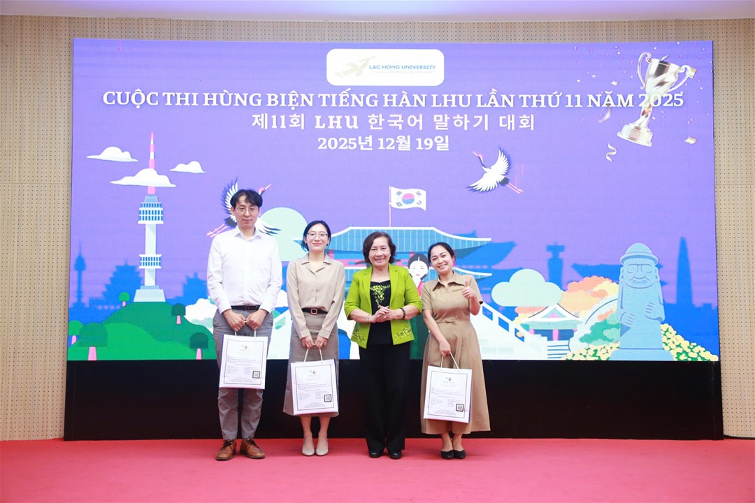 Chiều ngày 19/12/2025, tại Hội trường A301, cơ sở 1, Trường Đại học Lạc Hồng, ngành Hàn Quốc học đã tổ chức thành công Vòng Chung kết Cuộc thi Hùng biện tiếng Hàn LHU lần thứ 11 năm 2025. Đây là một sân chơi học thuật giúp sinh viên ngành Hàn Quốc học có cơ hội nâng cao khả năng sử dụng tiếng Hàn, đặc biệt là kỹ năng nói và thuyết trình. Cuộc thi không chỉ khuyến khích sự tự tin trong việc biểu đạt tiếng Hàn mà còn mở ra cơ hội cho các bạn sinh viên thể hiện sự am hiểu về văn hóa, đất nước, con người Hàn Quốc, góp phần thắt chặt mối quan hệ tốt đẹp giữa nhân dân hai nước Việt Nam - Hàn Quốc.