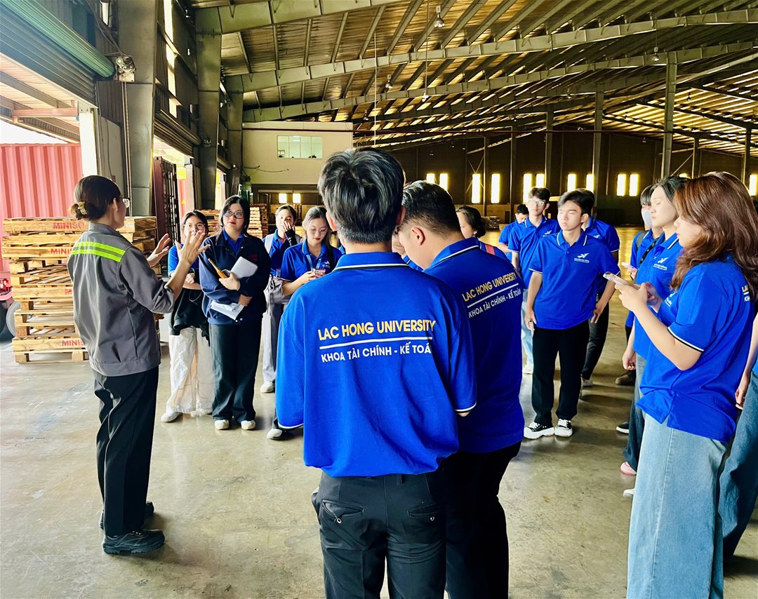 Hoạt động thuộc học phần Nhập môn Logistics và Quản lý chuỗi cung ứng, với sự đồng hành của giảng viên Khoa Tài chính – Kế toán và Bộ phận Thực tập & Quan hệ doanh nghiệp. Tại doanh nghiệp, sinh viên được giới thiệu tổng quan về mô hình vận hành kho ngoại quan, quy trình tiếp nhận – lưu trữ – xuất hàng, công tác quản lý kho, kiểm soát hàng hóa, cũng như các yêu cầu nghiệp vụ trong hoạt động logistics kho bãi.