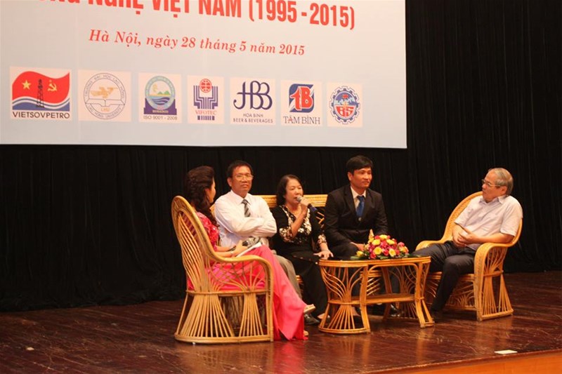 Ts Nguyễn Vũ Quỳnh - Trưởng phòng Nghiên cứu Khoa học của Trường Đại học Lạc Hồng - Người mặc áo vest đen tham gia tọa đàm cùng với các nhà khoa học trong buổi lễ kỷ niệm 20 năm thành lập giải thưởng