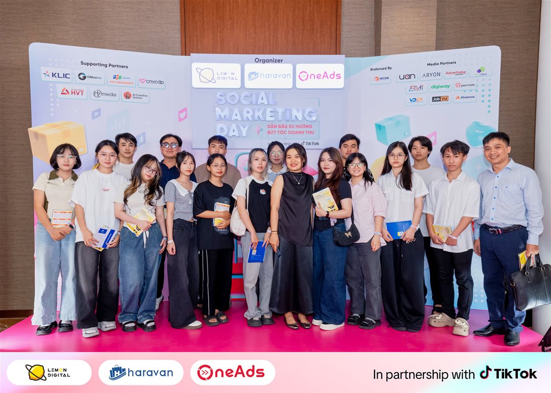 On October 8, 2025, a delegation of students from the E-commerce, Multimedia Communications, Information Technology, and Artificial Intelligence majors—Faculty of Information Technology, Lac Hong University (LHU)—led by Mr. Tran Thanh Hai, attended the "Social Marketing Day 2025" event at Riverside Palace, Ho Chi Minh City.